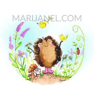Marijanel’s portfolio includes hand-illustrated picture books such as Let’s Sourdough: A Wholesome Story from Jar to Loaf, A Busy Day in ABC Woods, and Wait, Darling, Wait. She is also the artist behind the heartwarming Missy-May Hedgehog line of greeting cards, available in boutique gift and floral shops.